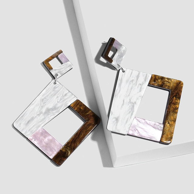 FLOLA Trendy Big Acrylic Earrings for Woman Korean Geometric Resin Earrings Large Za Earings Fashion Jewelry ersn90